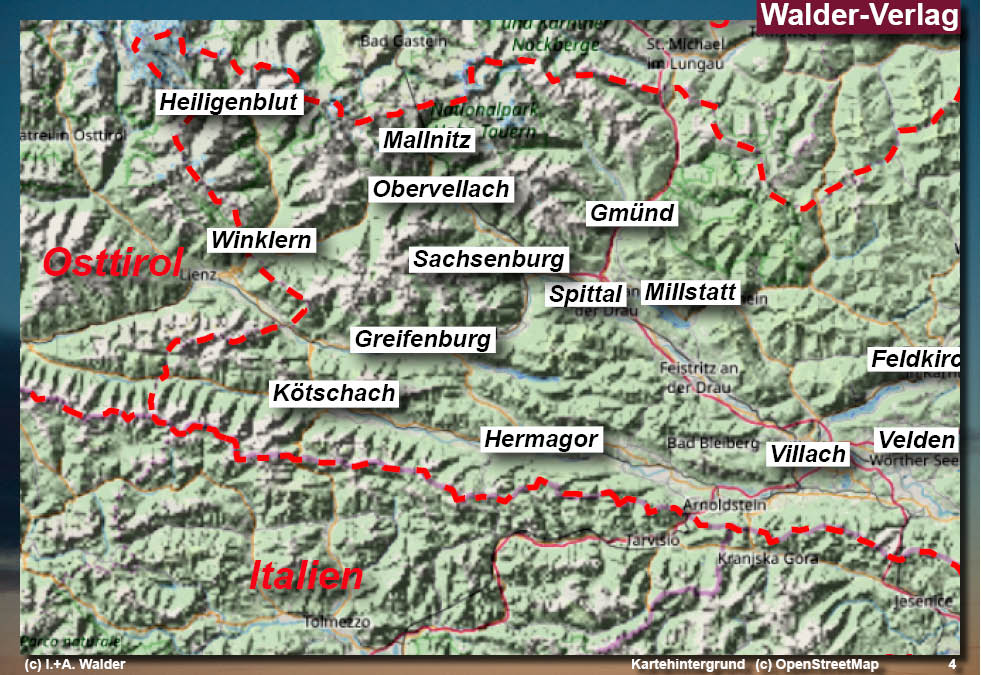 Oberkärnten ist der westliche und geographisch höherliegende Teil des südlichsten österreichischen Bundeslandes Kärnten. Die nicht ganz trennscharfe Bezeichnung umfasst eine Fläche von ca. 6.000 Quadratkilometern, die im Wesentlichen aus dem Bereich der Hohen Tauern, der Gailtaler Alpen und der Karnischen Alpen besteht. Der größte Teil des Gebiets liegt über 1.000 m und ist alpin bis hochalpin. Oberkärnten umfasst die Bezirke Spittal an der Drau, Hermagor und Teile von Villach-Land und Feldkirchen. Zentrale Flüsse sind die von Westen nach Osten fließende Drau und Gail. Der höchste Punkt ist der Großglockner. Ausgangspunkt für einen Ausflug auf den größten Gletscher Österreichs, die Pasterze sowie für eine Besteigung des Großglockner ist der Ort Heiligenblut, der auch mit vielen weiteren Sehenswürdigkeiten aufwarten kann. Gegenwärtig ist Spittal an der Drau das. ...